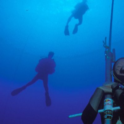 Having experienced a blackout before the dive began, and narcosis as she reached the depths, free diver Tanya Streeter and her safety adviser John Garvin describe events as she attempted an ascent from the depths of 160 metres, on just one breath of air. Photo: Tanya Streeter underwater Credit: Phil Shearer