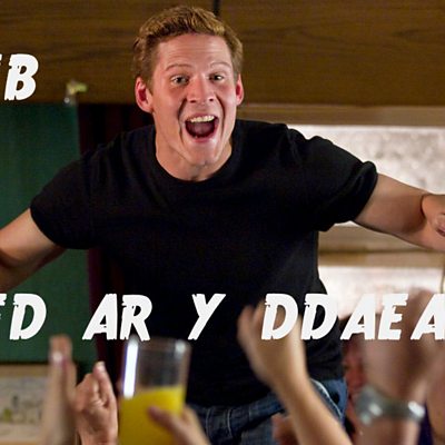 Gareth Jewell sy'n ateb holiadur seleb neu traed ar y ddaear.