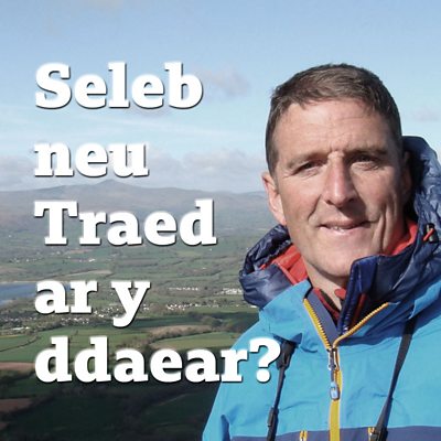 Iolo Williams sy'n ateb holiadur seleb neu traed ar y ddaear.