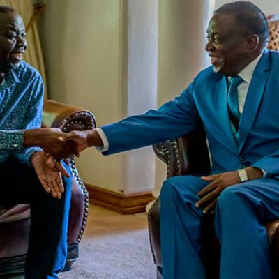 Zimbabwe's President Emmerson Mnangagwa has been speaking to ÃÛÑ¿´«Ã½ Minute's Seren Jones in the capital Harare. He talked about former Prime Minister Morgan Tsvangirai's legacy. He also spoke about holding free and fair elections in the country this year. (Photo: Zimbabwe's President Emmerson Mnangagwa (R) shaking hands with former prime minister Morgan Tsvangirai (L), during a visit at his home in Harare on January 5, 2018. Mr Tsvangirai, who was battling cancer, died on February 15. Credit Jekesai Njikizana/AFP/Getty Images)