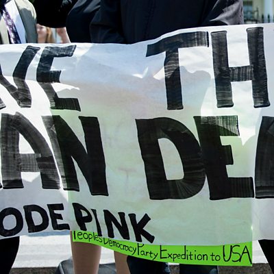 The 2015 Iranian nuclear deal lifted economic sanctions on Iran in exchange for limits on its nuclear activity. President Donald Trump says America is withdrawing from the agreement, and the highest level of sanctions will be reinstated against Iran. Iranian journalist Nazenin Ansari tells us what sanctions mean for the people and the economy of Iran. (Picture: 'Save the Iran Deal' protest sign. Credit: Getty Images)
