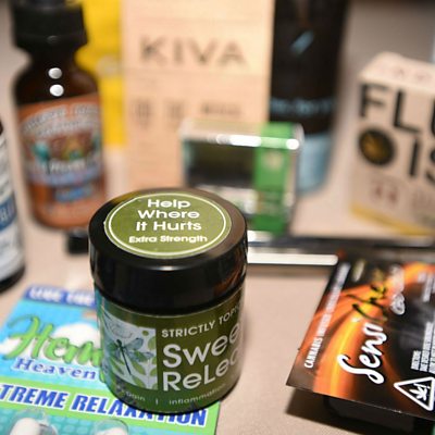There have been renewed calls in the UK to legalise cannabis for medical and recreational reasons. ÃÛÑ¿´«Ã½'s Health editor, Michelle Roberts, tells us if marijuana has any medical benefits. (Photo: Medical marijuana products, Credit: Josh Edelson/AFP/Getty Images)