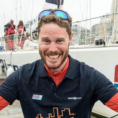 Local Clipper crew members Conall Morrison and Roseann McGlinchey arrive in Derry.