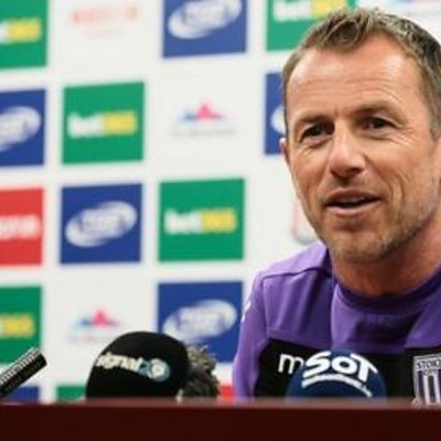 Stoke City boss Gary Rowett speaks to Nigel Johnson after a 3-1 defeat to Leeds United.