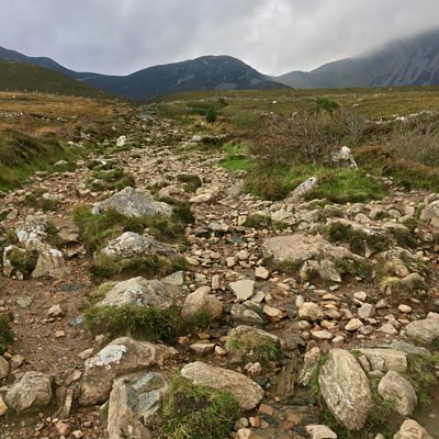 Tracey Logan visits a path built near the summit using materials found on the mountain