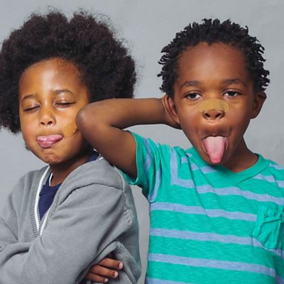 When Toby Meisenheimer's son Kai cut his forehead, he realised that most bandages were only designed for white people. He told Vivienne Nunis about how he was inspired to set up a company to make bandages for a wider range of skin tones and the emotional reactions people have when they discover they can use a bandage which matches their skin. (Picture: Two boys with skin-coloured bandages on their faces. Credit: Tru-Colour Bandages)