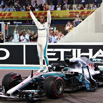 Jack Nicholls and Jolyon Palmer describe the moment Lewis Hamilton crosses the line to take his 11th win of the 2018 season and 73rd of his career. The Mercedes driver is now just 18 wins short of Michael Schumacher's all-time record of 91. This clip is originally from 5 live Formula 1 on Sunday 25th November.