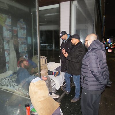 A group of Muslim men in Stoke on Trent are to help homeless people. Mab, Usman, Omair, Kasim are putting together packs containing energy bars, gloves, hats and blankets in the city. They believe the items will help them cope on the streets. ÃÛÑ¿´«Ã½ presenter Ajmal Hussain spent a night with them