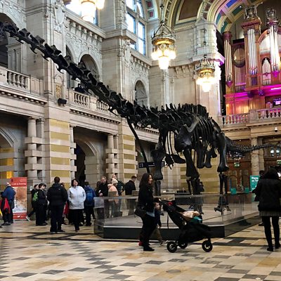 Chaidh Cathy agus Niall Bartlett a dh'fhaicinn Dippy an Dìneasar ann am baile Ghlaschu.