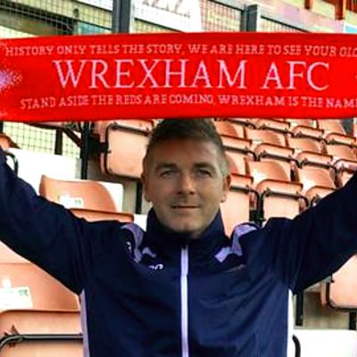 Cyfarwyddwr Wrecsam, Spencer Harris a'r cefnogwr Stephen Rule yn trafod y penodiad
