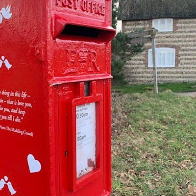 The Royal Mail is unveiling four 'romantic' postboxes across the UK; one in Higher Bockhampton features words from Thomas Hardy's Far From the Madding Crowd.