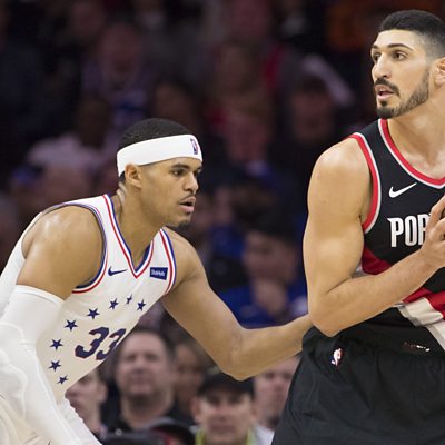 NBA basketball player Enes Kanter is an outspoken critic of the Turkish government. The leadership in Turkey sees him as a supporter of exiled cleric, Fethullah Gulen. Turkish security forces once raided his house in Turkey. As a result, Kanter fears going back to visit his home country. (Tobias Harris #33 of the Philadelphia 76ers guards Enes Kanter #00 of the Portland Trail Blazers in the fourth quarter at the Wells Fargo Center. Credit: Mitchell Leff/Getty Images)