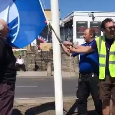 James arrives in Cleethorpes and has the honour of raising the new blue flag!