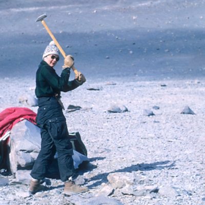 Until 1969 American women were not allowed to travel to Antarctica. The US Navy was the only means of getting there and they prohibited women from making the journey. After the ban was lifted, Terry Tickhill Terrell became one of the first female American scientists to do research on Antarctica. (Image: Terry Tickhill Terrell, then 19, swings at a boulder for rock samples in Antarctica’s Wright Valley in 1969. Credit: Lois M. Jones Papers, SPEC.PA.56.0213, Byrd Polar and Climate Research Center Archival Program/The Ohio State University.)
