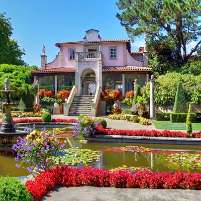 Mary Payne shows Rebecca around the Italian Gardens at Compton Acres.