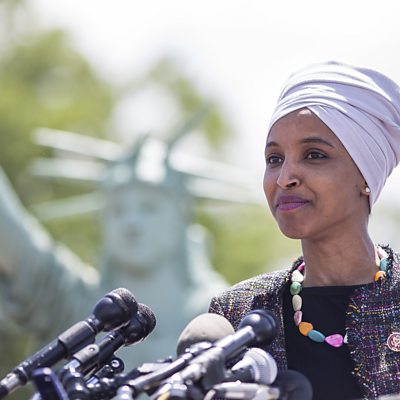 Ilhan Omar was born in Somalia and fled to Kenya with her family when war broke out. She came to the US in the early 90's and was granted asylum a few years later. Now, Ilhan Omar is a congresswoman representing a district in the Midwestern state of Minnesota. Given her own story, she has strong opinions on the current immigration clampdown. (Rep. Ilhan Omar (D-MN) speaks during a rally to express solidarity with immigrants and refugees hosted by MovOn, United We Dream, Families Belong Together and Popular Democracy near Union Station. Credit: Zach Gibson/Getty Images)