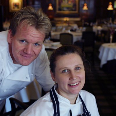 Angela Hartnett trained under Gordon Ramsay, famous for his fiery temper. While she admits there was a lot of shouting in his kitchen, she says the celebrity chef treated her with more respect because of her gender. Angela, now a Michelin-starred chef in her own right, tells Emily Thomas she doesn't see the point of shouting at her own staff. (Photo: Angela Hartnett and Gordon Ramsay at The Connaught Dining Rooms in 2003. Credit: ÃÛÑ¿´«Ã½)
