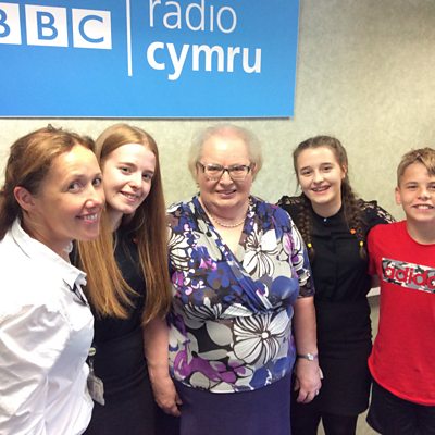 Roedd tri ohonyn nhw - Mari, Cadi ac Elis yn y stiwdio hefyd i sôn am eu mam-gu.
