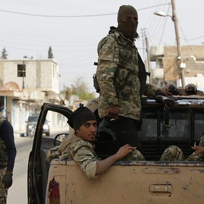 Turkey has agreed to a five-day ceasefire in northern Syria to let Kurdish-led forces withdraw after US Vice-President Mike Pence and Turkey's President Recep Tayyip Erdogan met for talks in Ankara. The US will help facilitate the withdrawal of Kurdish-led troops from what Turkey terms a "safe zone" on the border, Mr Pence said, crediting Donald Trump's "strong leadership" for the agreement. It is unclear if the fighters of the Kurdish YPG will fully comply, however. UK-based war monitor the Syrian Observatory for Human Rights (SOHR) said clashes were continuing in Ras al-Ain. Sinan Ulgen, the head of the EDAM think tank in Istanbul, explains what happens now. (Photo: Turkish-backed Syrian fighters in the Syrian border town of Tal Abyad. Credit: Bakr Alkasem/AFP)