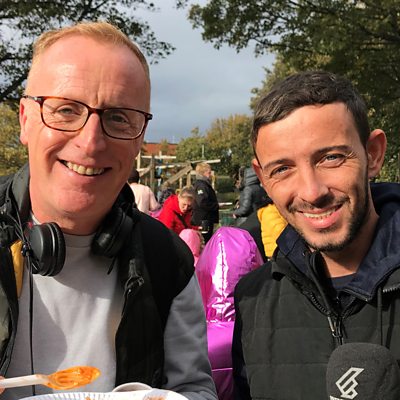 Bryan Burnett with Robert Kennedy the Project Co-Ordinator at Baltic Street Adventure Playground where hot meals and fun are on the menu.