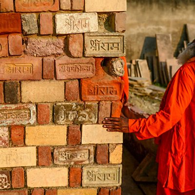 The Supreme Court approved a Hindu temple at Ayodhya, where a mosque once stood. But at what cost to India's religious tolerance, asks our South Asia editor Anbarasan Ethirajan. (Picture: A Hindu holy man looks at bricks for a proposed new temple at the site of the demolished Babri mosque. Credit: AFP/Getty)