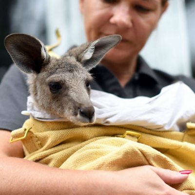 People from around the world are knitting blankets and clothes to help the animals hurt by Australia's bushfires. People are making pouches for orphaned kangaroos, mittens for burnt koalas, and blankets for bats which have lost their homes. Mariana Heggholmen lives in Norway and told ÃÛÑ¿´«Ã½ OS why she's been knitting for the animals. (Credit: A volunteer taking care of a rescued kangaroo at her house on the outskirts of Sydney. Credit: Saeed Khan/ AFP / Getty Images)