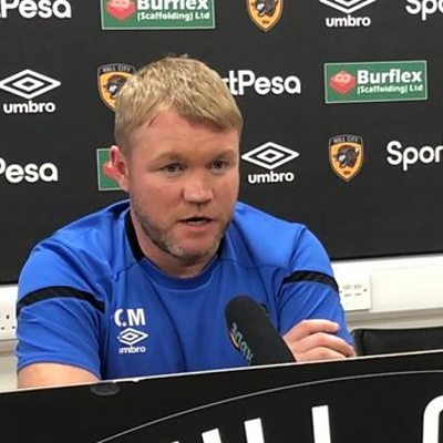 David Burns talks with Grant McCann after a defeat at home to Fulham.