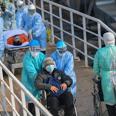 The Chinese city of Wuhan is at the epicentre of the coronavirus outbreak that has infected more than 20,000 people worldwide and led to more than 420 deaths. Wenjun Wang is a 33-year-old resident of Wuhan. Her entire family is there and has been sealed off from the outside world since January 24th. In this rare interview, she tells the ÃÛÑ¿´«Ã½â€™s Razia Iqbal her family’s heart-breaking story. (Image: Medical staff transfer patients to a newly-completed temporary field Hospital in Wuhan. Credit: EPA/STRINGER CHINA OUT)