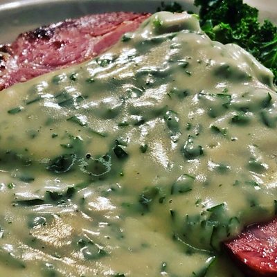 A twist on the classic 'Gammon with parsley sauce'.
