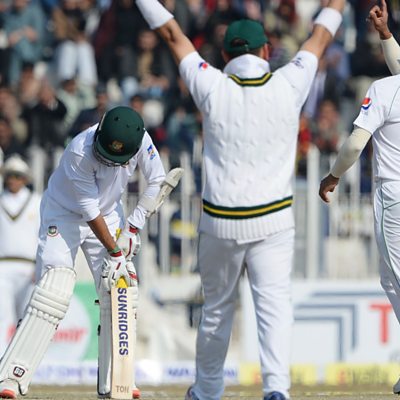 Taimur Khan first spotted Naseem Shah at a regional talent trial a few years ago and he tells Stumped, that he knew he would go on to play for Pakistan on the international stage. Shah became the youngest player to take a hat-trick in Test cricket for Pakistan. Speaking with ѿý Stumped presenter, Alison Mitchell, Khan explained what made Shah an International prospect at such an early age: “You know when he was with me in the national camp for the under 16’s, he was down to earth, quick learner and he was listening to all the senior players, always asking them for tips. He was very good in training, always on time and diet conscious at that age. That made him an exceptional case”. (Photo: Pakistan bowler Naseem Shah celebrates after taking the wicket of Bangladesh"s Saif Hassan. Credit: AFP)