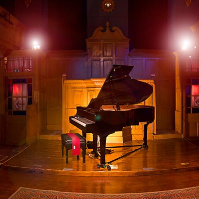Hywel Wigley, perchennog Stiwdio Acapela yn trafod y lleoliad fel canolfan gerddoriaeth