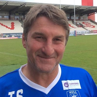 Tony Smith talks to Richard Stead after a win at home to Leigh Centurions.