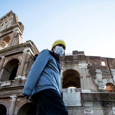 The number of people currently infected with coronavirus fell for the first time in Italy earlier this week. Prof John Ioannidis from Stanford University analyses what countries yet to experience their peak in cases can learn from Italy’s experience. (Image: A man with a facemask in front of the Colosseum in Rome Credit: European Pressphoto Agency)