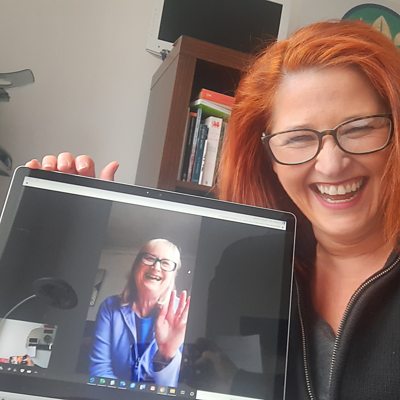 Daughter Mari and mother Melita enjoy a remote family pub quiz during lockdown.
