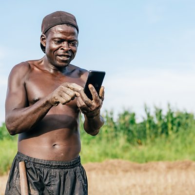 Brave Mhonie, the general manager of SolarAid in Malawi, explains how the charity plans to use solar power to spread public health updates across the country about the Covid-19 pandemic. (Image: A farmer in Malawi looking at his mobile Credit: Getty Images)
