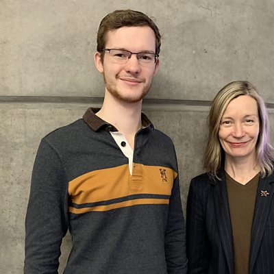 Iseabail Mhoireach a' còmhradh ri neach-ionnsachaidh na seachdain, Crìsdean Oates.