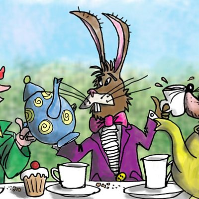 Alice finds the Hatter and the March Hare having a very strange tea-party.