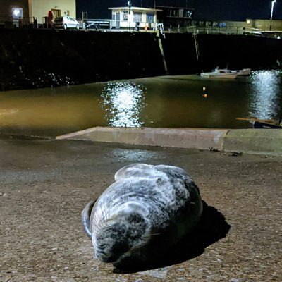 People in Minehead have nicknamed a seal sleeping on the harbour slipway ‘Jeff’. They‘ve put up signs and barriers to make sure the grey seal’s not disturbed. Dan Jarvis from British Divers Marine Life Rescue talks to Claire Carter about why he might have chosen this unusual spot for a nap. Image: Andrea Paladino