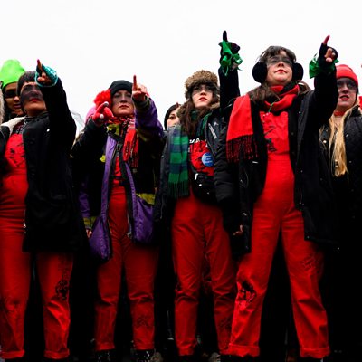 From India to Kenya, Mexico to Turkey, a catchy song against gender violence spread around the world. “The Rapist is You” intended to bring feminist theory to larger crowds and ended up becoming a global anthem. The Chilean collective Las Tesis speak to reporter Constanza Hola about how art, feminism and politics must combine for social change. (Photo: A performance of "The Rapist is You." Credit: ANDREW CABALLERO-REYNOLDS/AFP via Getty Images)
