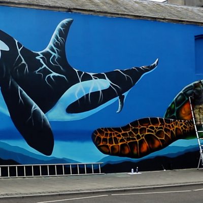 Artist Martin Darcy has painted a new mural on Knightstone Road as a gift to the people of Weston-super-Mare. The underwater mural depicts an orca and a sea turtle, and has been painted on the side of the Royal Hotel.