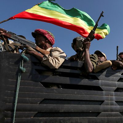 The Ethiopian government launched a military offensive against the TPLF in Tigray on 4 November. There have been reports of continued fighting and attacks across Tigray, and almost 50,000 refugees have fled across the border to Sudan. The increasing numbers of refugees, the failure of supplies being able to arrive in the area and one of the worst locust plagues for years are having serious consequences. The United Nations says the situation is developing into a “full scale humanitarian crisis”. There are also concerns on the impact of the conflict on neighbouring countries. Ethiopia plays a significant role in the Horn of Africa in terms of peace and security and is one of largest contributors to UN peace keeping forces. There are reports it has already withdrawn some of its forces and a fear that as the situation becomes more volatile, countries like Somalia will be affected. Ahmed Soliman, a research fellow with the Africa Programme at Chatham House, explains the devastating impact the situation is already having on the area and the danger that the conflict could affect neighbouring countries and stability in the area. Photo: Members of Amhara region militias head to face the TPLF near a border with Tigray, Ethiopia, November 2020 Credit: Reuters