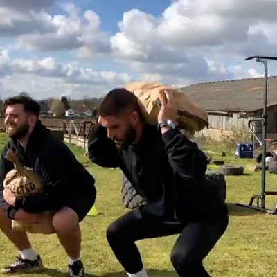 Laurie Dyche pulls wheelbarrows and squats potatoes at a farm in Notts for a new workout.