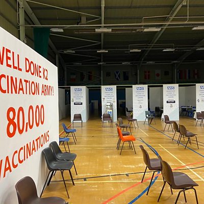 Reporter Harry Parkhill chats to vaccine volunteers Steph & Kaye.