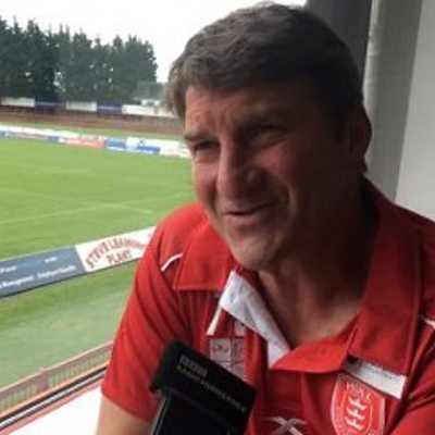 Tony Smith talks to Richard Stead after a defeat at Warrington.