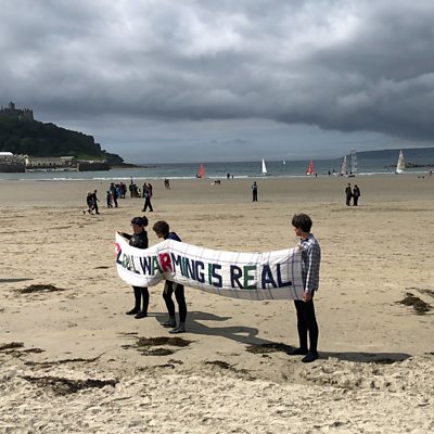 People from Cornwall staged a protest on Marazion beach to highlight climate change