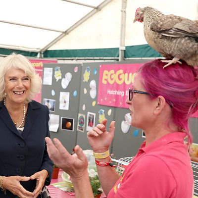 Deb Howe founder of 'Eggucation' told Toby why she was "wearing a chicken" and what Camilla Parker Bowles thought of her work at this year's Great Yorkshire Show.