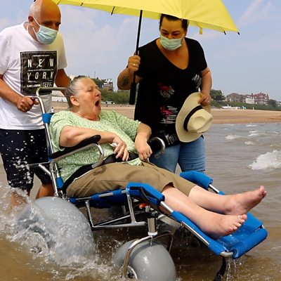 Edensor Care Centre now has two beach wheelchairs thanks to a local business which paid £4,500 for them. Their extra-large wheels allow the wheelchairs to roll on top of the sand.