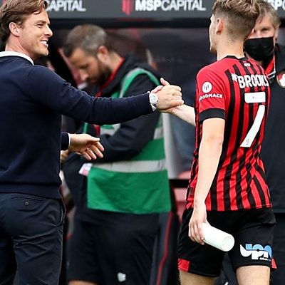 Scott Parker celebrates a big win in his first competitive game in charge.
