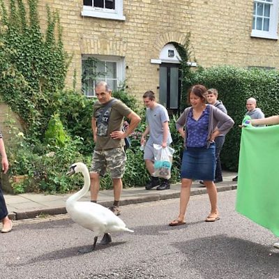 What happened when a stubborn swan landed on a busy Cambridge road.