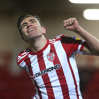 Eric White chatted to Scottish midfielder Joe Thomson after Derry City defeated Dundalk 1-0.
